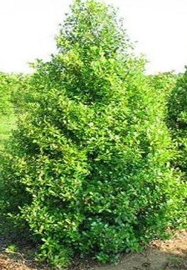 The Dahoon “Tensaw” Holly is a smaller evergreen tree with a dense, pyramidal growth pattern that can reach about 15 feet in height and spreads of around 10. These hollies grow light green ovate leaves that darken with age and produce small white flowers followed by red berries in the fall and winter months. The rounded crown of the tensaw is heavily branched at maturity, ( they mature faster than most evergreens) which makes these trees a fine choice for borders, hedges, or specimens (they love full sun!) for many years to enjoy!