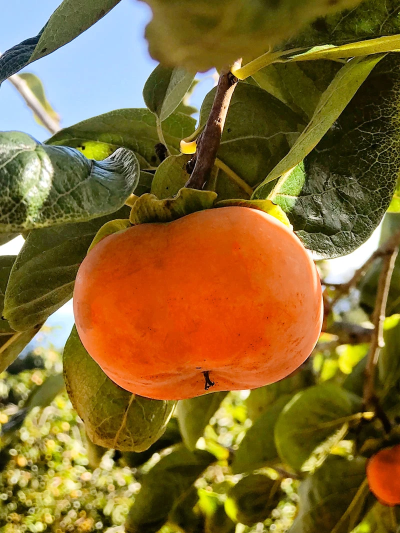 Maekawa Jiro can grow to be 12 ft high. It can withstand very cold-hardy weather. When ripe and mature, the fruit will turn orange. Jiro can be eaten while its flesh is still firm, like an apple. Ripens early, a week or so earlier than Ichi. A handsome yard tree. Self-fertile. We graft the Maekawa Jiro persimmon onto native American persimmon root stock.