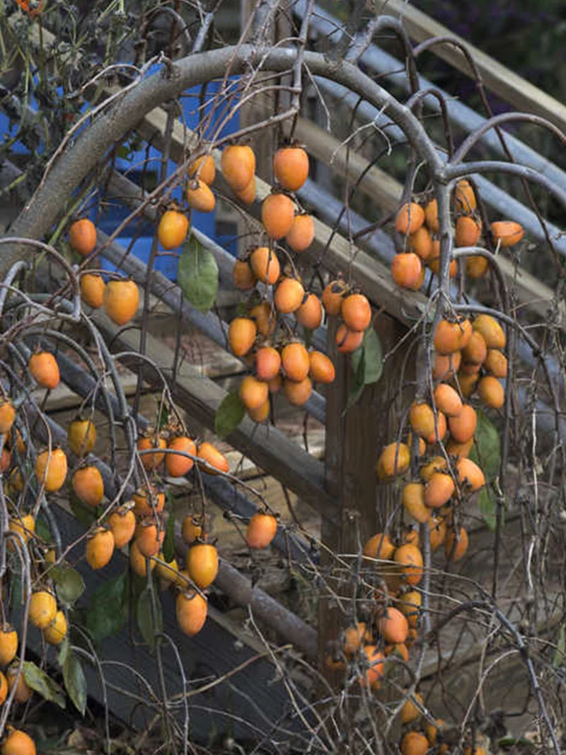 The Weeping astringent persimmon is a very rare variety of Japanese persimmon. It has a weeping form and must be staked up when young. The weeping persimmon produces a medium sized, conical shaped fruit that hang off the tree like teardrops. This astringent persimmon ripens in late October through mid November. If staked, it can reach a height of 6’ tall and 2’ wide in 10 years. We graft the Weeping persimmon onto native American persimmon root stock.
