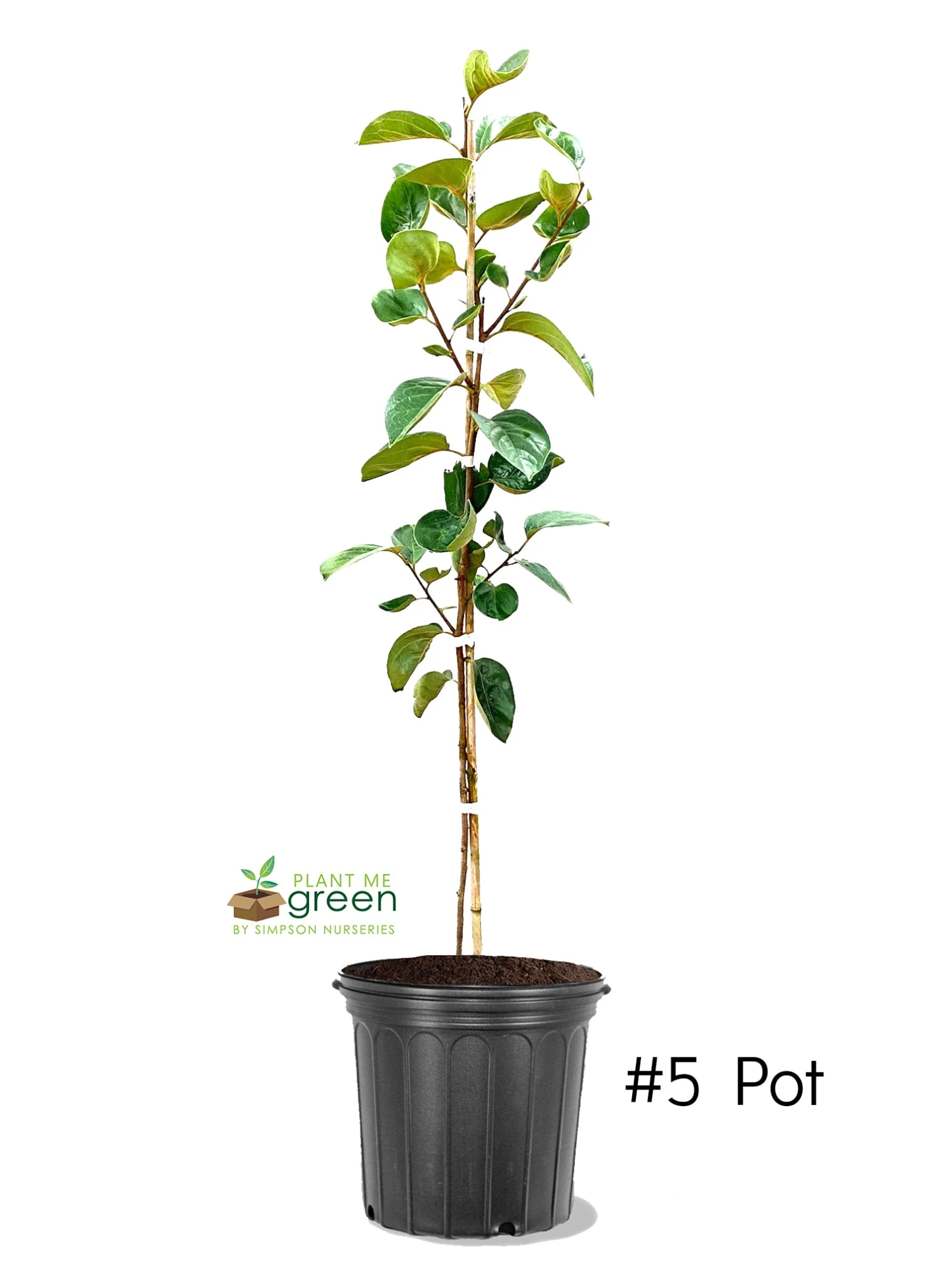 Long appreciated for its crunchy, sweet fruit that eats almost like an apple right off the tree, Fuyu Jiro is also wonderful for cooking and dehydrating. There is most likely no better snack in the middle of the winter than a dried Fuyu Jiro Persimmon. Typically seedless (unless another Persimmon variety is close by) almost the entire fruit is edible right through to the core. This makes it easy to work with in food preparations or for slicing for drying. The 4 to 5 inch fruit is flat and almost square, with four soft corners. Fuyu Jiro is one of the hardier of the Japanese varieties of non-astringent persimmons and can take temperatures to Zone 7. Jiro is a prolific producer of large sized, flat square-tomato shaped fruit that are a beautiful orange red color. The trees have a more upright form compared to other non astringent varieties of persimmon trees. Fruit ripens in ahead of Fuyu and is considered a mid season variety, October to early November. Although the Fuyu Jiro Persimmon is pest resistant and easy care, it does have some special requirements. First, when siting your tree, it’s best to give it well-drained soil and a full sun position. This is a tree you won’t have to fuss over, as it’s hardy and tolerant of a wide range of climate conditions. Give it regular water the first year in your landscape. Once the roots are established in your soil, the Fuyu is quite drought tolerant. Persimmon trees are lovely ornamentals with outstanding fall fruit.