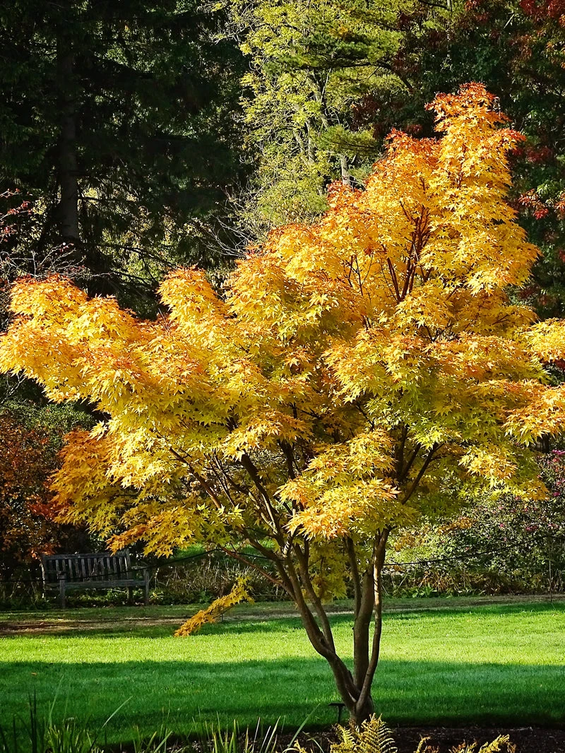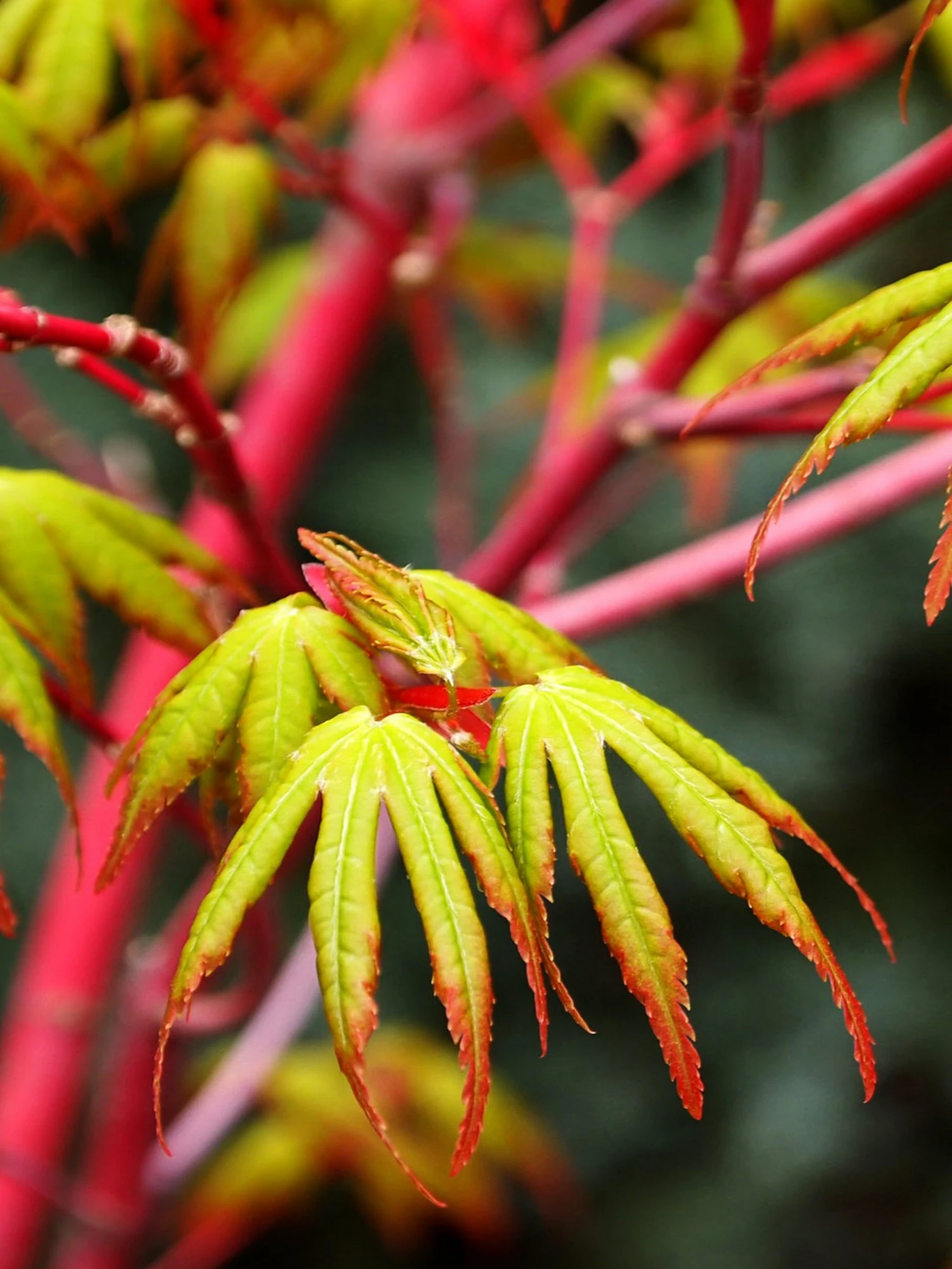 Sango-kaku, also known as the coral bark Japanese maple, is a deciduous, small to medium-sized tree. Noted for its showy coral bark and fall color, that is particularly showy in the fall and winter after the leaves drop, the award-winning Acer palmatum Sango-kaku is a must for those who appreciate winter bark interest. This maple tree features an upright, vase-shaped habit and makes an outstanding four-season tree that is enjoyed by all gardeners as it graces the landscape. Coral bark Japanese maple is a slow- to moderate-growing woody tree. Plant it in full sun to partial shade and in moist, well-drained soil. It tolerates a range of soil types including sand and heavy clay. The foliage will retain a light green-yellow color through spring and summer, and in fall it will turn bright yellow. The color intensifies in cold weather to almost salmon, and although it produces its best color in full sun, new foliage may scorch. This cultivar is drought tolerant.Â